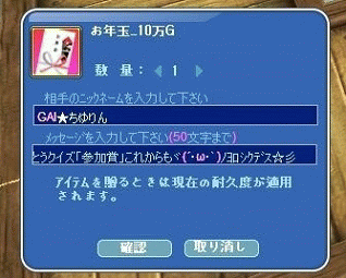 参加賞で100万Gのお年玉届いた方!