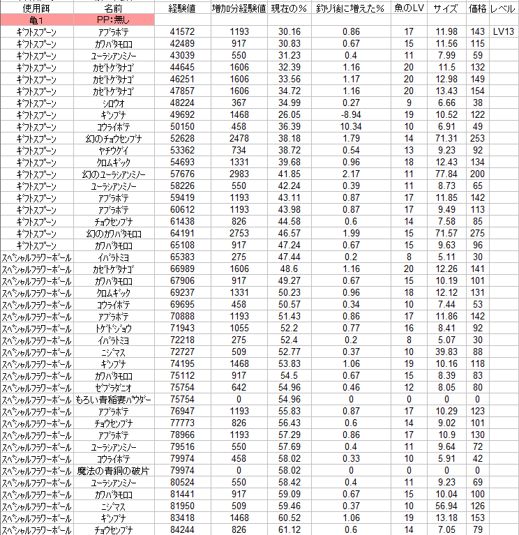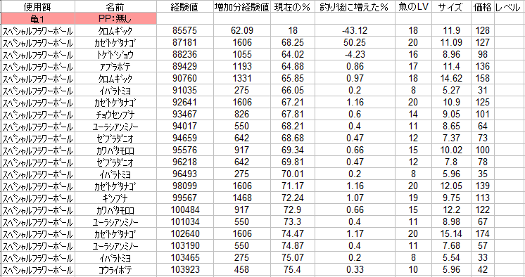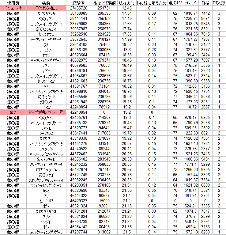 | マボを多く釣るように餌を変えたりすれば、UPは早くなりますね(○^▽^○) |
