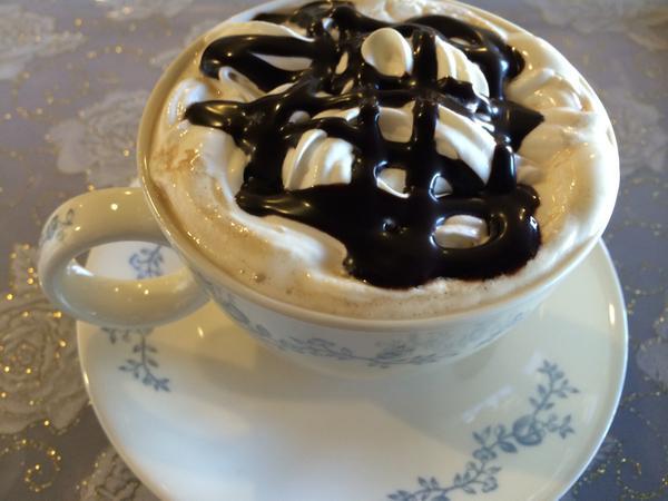 はい、お茶ww(チョコソースたっぷりのカプチーノww)