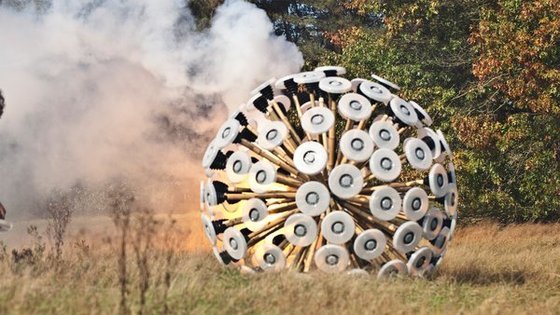 風力で動く地雷除去装置、2~3基の地雷を駆除出来るそう。