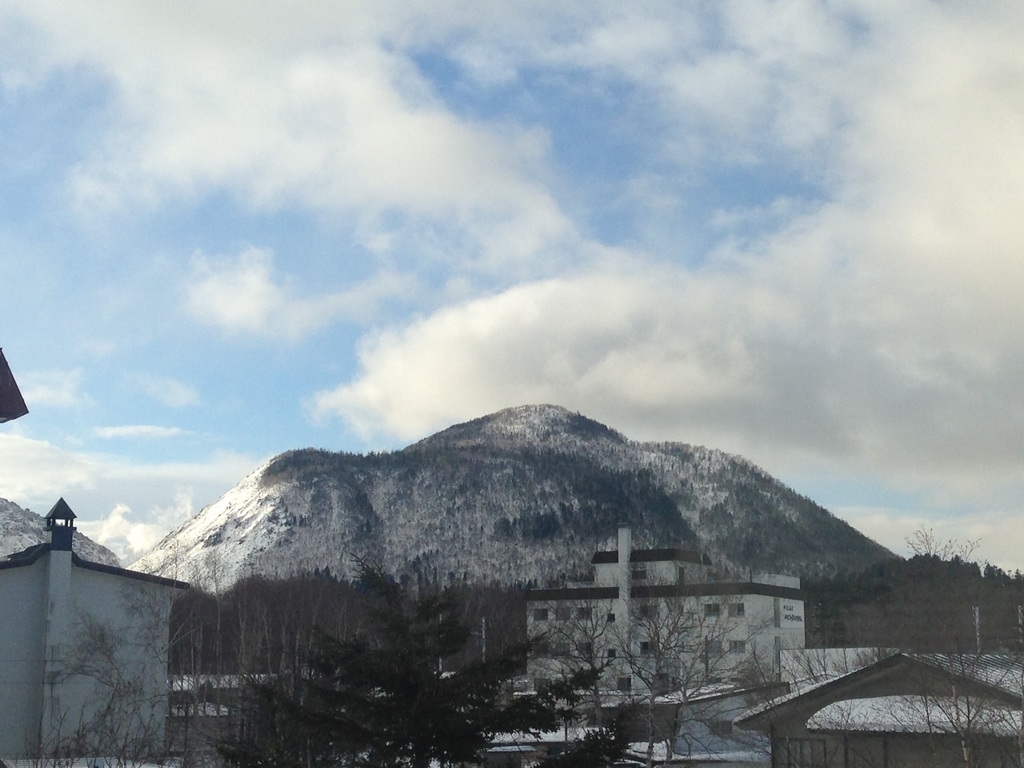 中央に見える山は硫黄山です。
