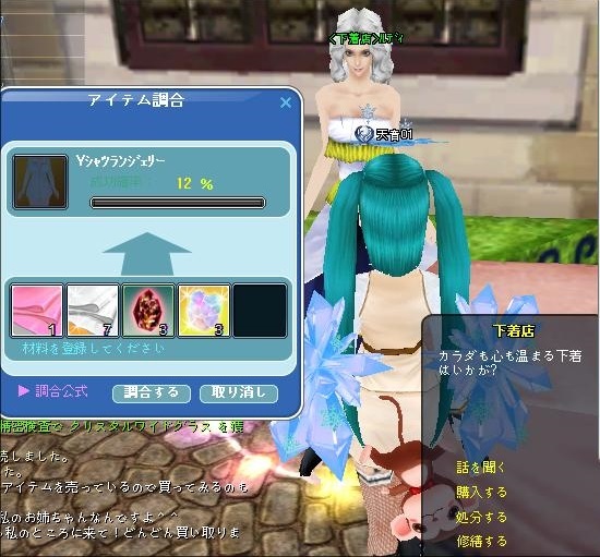 下着の調合 イベのたびにするけど・・・何度やったら成功するんだろう・・・orz