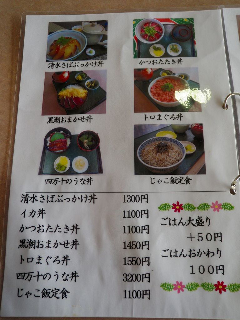 2日目の昼は、午前中「竜串」の施設見学の帰りに土佐清水の「足摺黒潮市場」にて