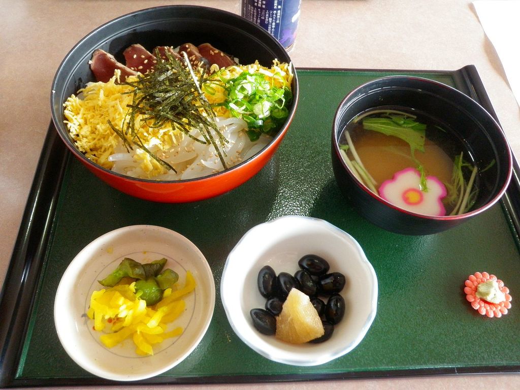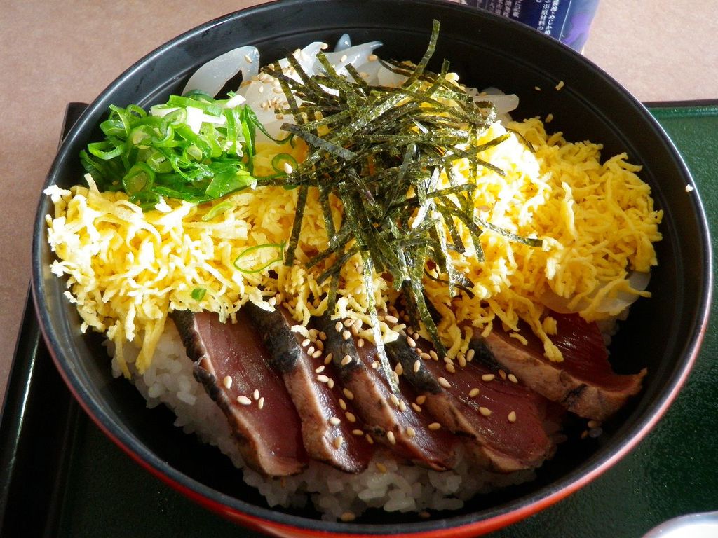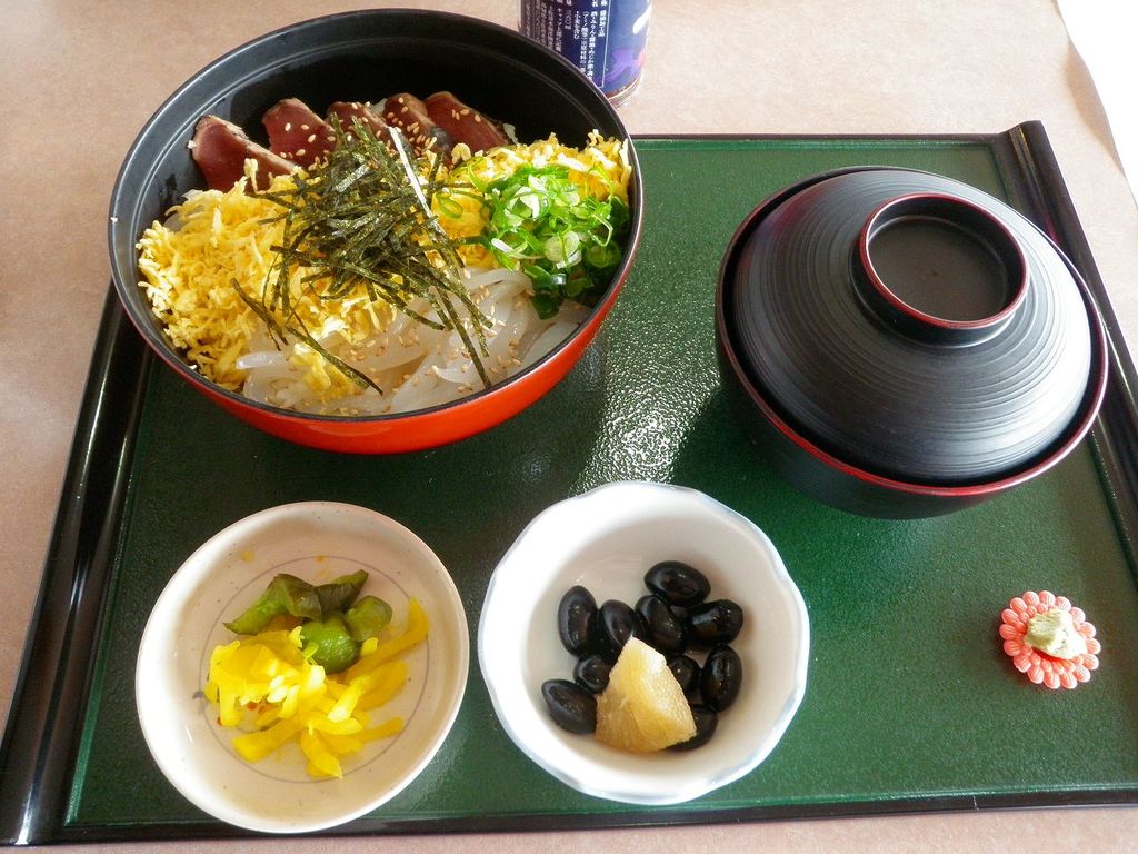 でもって、四国高知なら「カツオのたたき」は外せないからって思ったんだけれど、メニューを観ていて色合いが良かった「錦糸卵(黄)」と「あおり烏賊(白)」が目立った『黒潮おまかせ丼』をチョイス♪タレをぶっ掛けて食べる「カツオ」は勿論、「あおり烏賊」も新鮮で甘くて・・・大満足のランチタイムでした (゚д゚)ウマ-