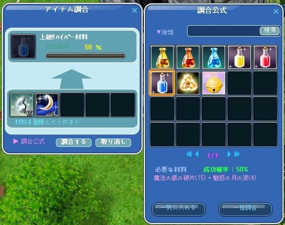 Goldで購入可能な材料アイテムで調合することが出来ますので、