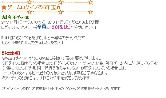 2.イベントその他でルビーがもらえることがありうること。