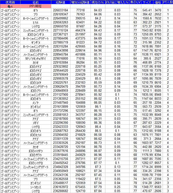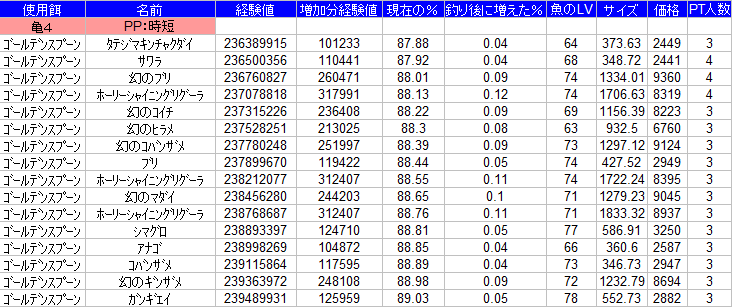 今回はレベキャンで幻の魚の経験値の入りがいいみたいなので、