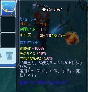 今週のお題は、まだまだ寒くて人恋しい季節ですね>V<こんな時は、好きな人と一緒にいるだけで幸せになれちゃいます❤ということで、「私の【幸せ】」 です!某GA★は「仕事後の1杯」と答えてました'`,、('∀`) '`,、♪[ゑ]ヽ【´・ω・`;】ノ[と] 小さな幸せを感じる時が、一番ほっこりできますね・・心許せる人達と共有できる…ひと時 かな~wあ、さて~ここMILUでは・・←これを作って、マジカル爺へ行くのですがね・・黒革のバッグ作るにはね・・・3万Gの黒革のかばん調合書を買って・・銀貨2枚と、深海魚精密から出てくるアイテム(これは山ほどあるw)を使って・・素のバッグが・・また出たりするギャンブルですw可愛がって頂いてる~みつるさん&ネギさんカップルにお呼ばれして…焚き火になる・・・いあ、そうじゃなく・・・wイベタコ退治に参加させて頂きました゚+(人・∀・*)+。アリガト♪←↑→が点滅する、ボス格なタコが・・3回も出た!!! 初めて見た☆修繕できない高属性のカチューシャと、海賊錨の時計が2個出ました♪←これね☆で・・エモるw マトリックスみたいwよち!満足したw 上げキャン頑張ってる、父ちゃんに進呈しました☆←図鑑50竿を、お借りしたので…魚図鑑も少し埋まりました♪ヽ(*´з`*)ノ美容整形が、半額SALE中なので・・前から気になってた、半眼いっときました(´∀`*)ウフフ前に、ダーも・・いいんじゃない言うてたし・・・でも、エロメガネしてるから・・見えないねwww…ジンギスカン作成中♪←こんなイベしてるってさ☆