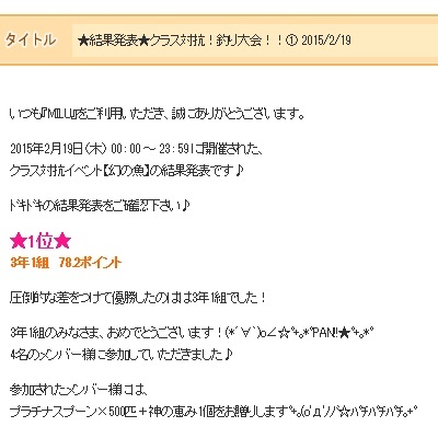 クラスが優勝しちゃいました。