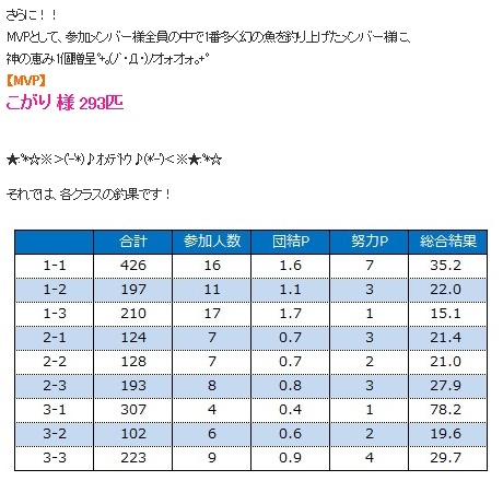 もちろんMVPです。293匹。我ながら廃釣りだなあ。