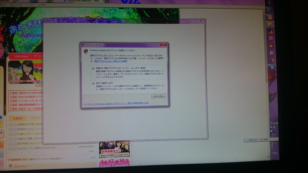 毎回WindowsUpdateの自動更新が設定されていないから設定しろとでる。