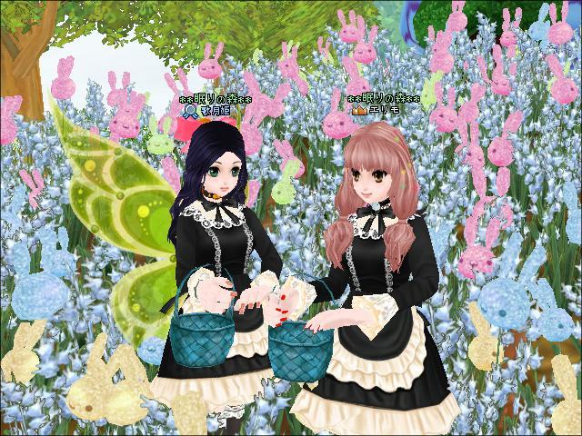 しるくさんがカゴくれて、姫とウサギのお花畑でお花摘んでました♪