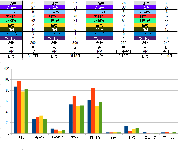 こうしてみると、割合とかパターンがわかってきますね。(^^ゞ