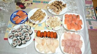 今回は、私が食べたいと言っていた、焼き鳥と、おすしをつくってくれました~