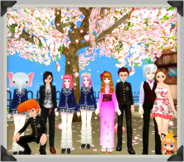 桜の木の前でみんなで記念撮影!