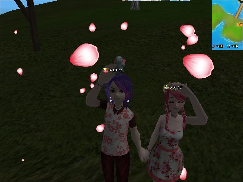 やっぱり、手を繋いでw散りゆく花びらを眺めてますw(*^▽^*)( *´艸`)