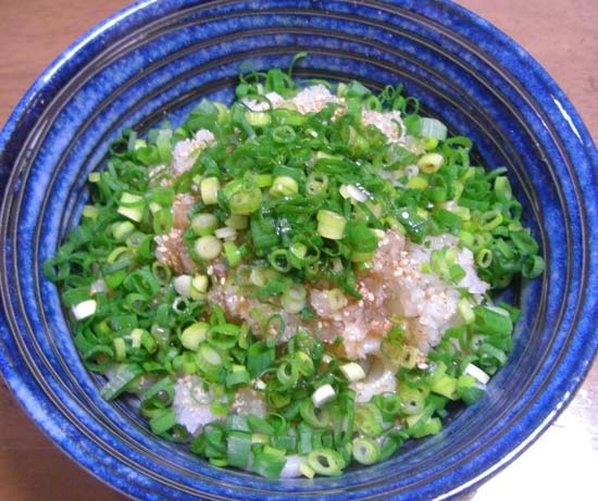 ネギたっぷりでわかりにくいですが、おろしうどんを食べ