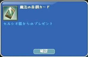 魔法の青銅カードを 頂きました^^