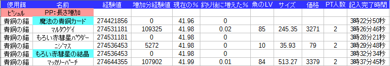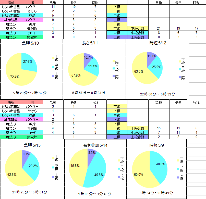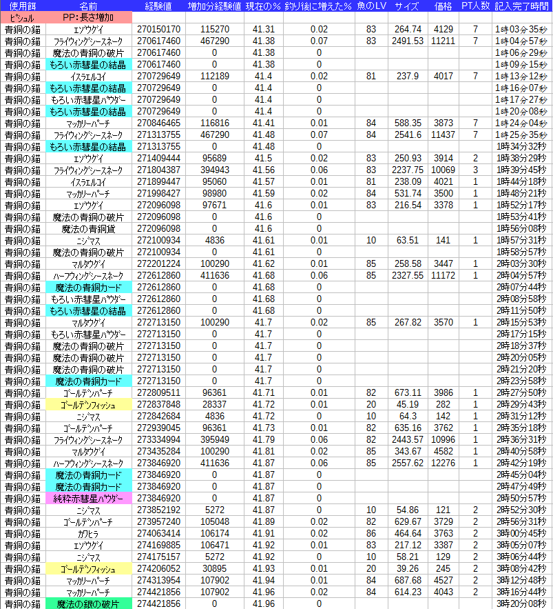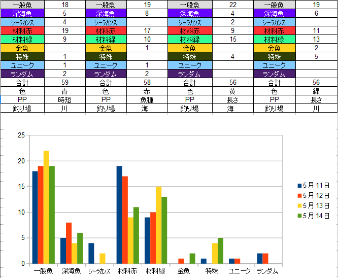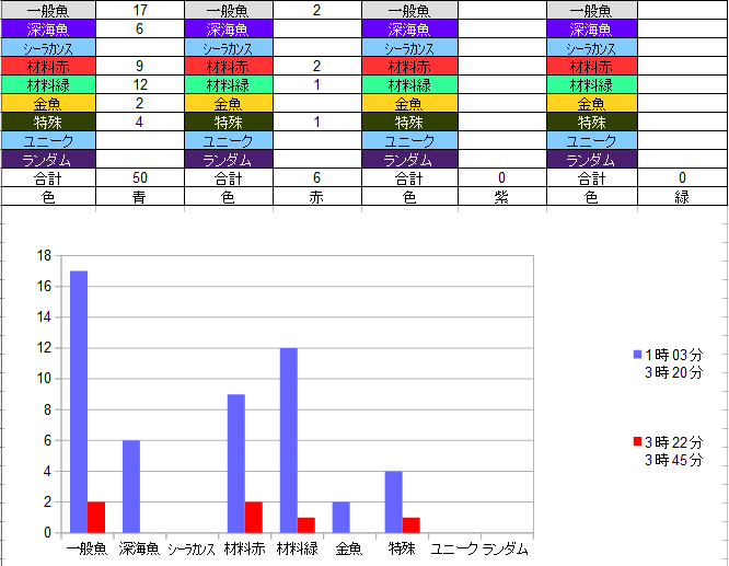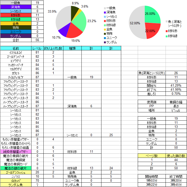 あと記録として公開していない分の時に高級材料釣れると