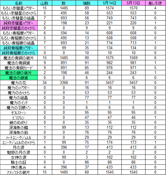今回は中級材料がそれなり?