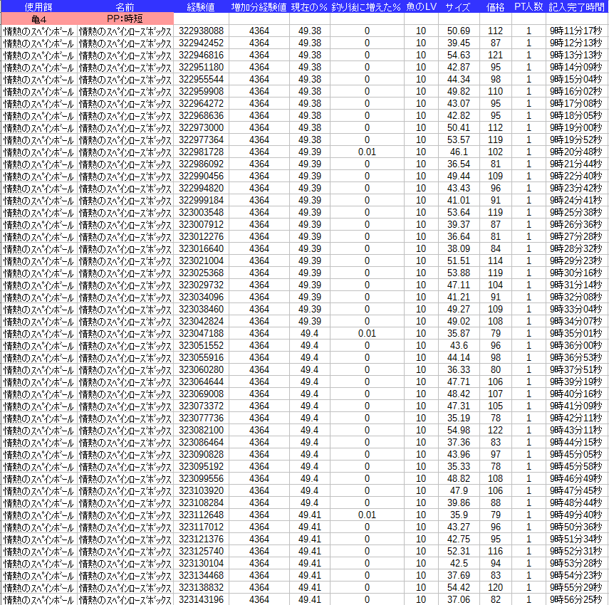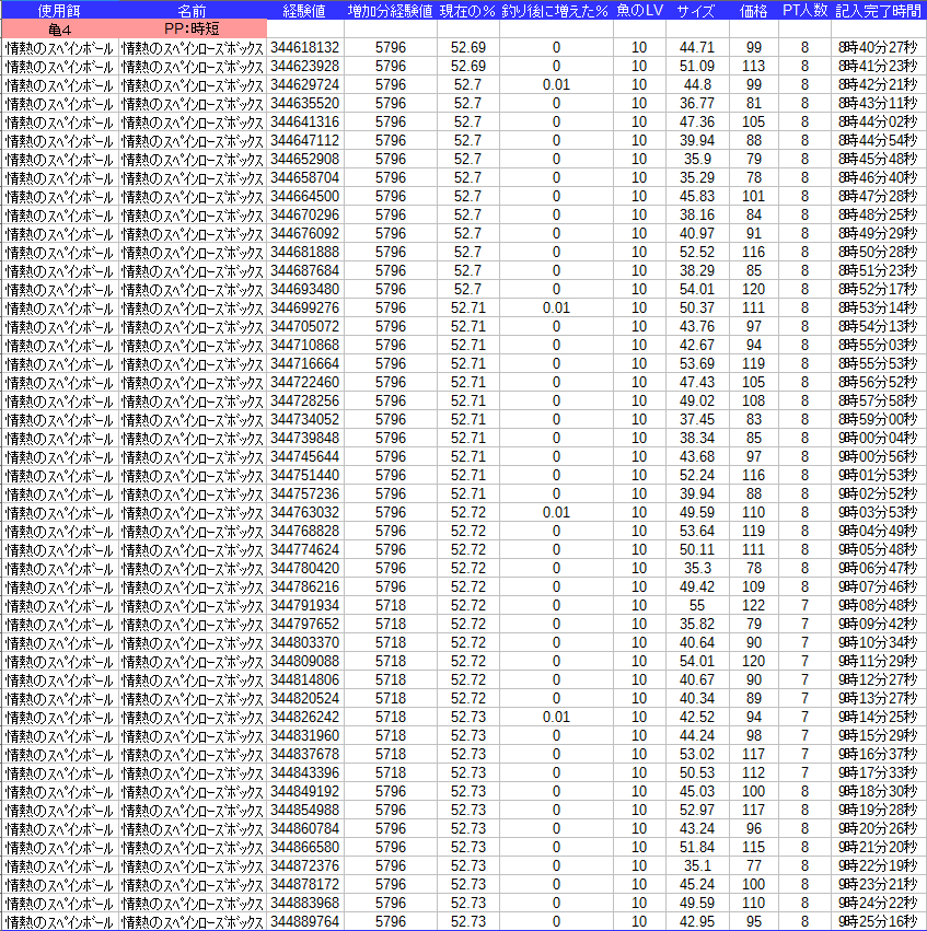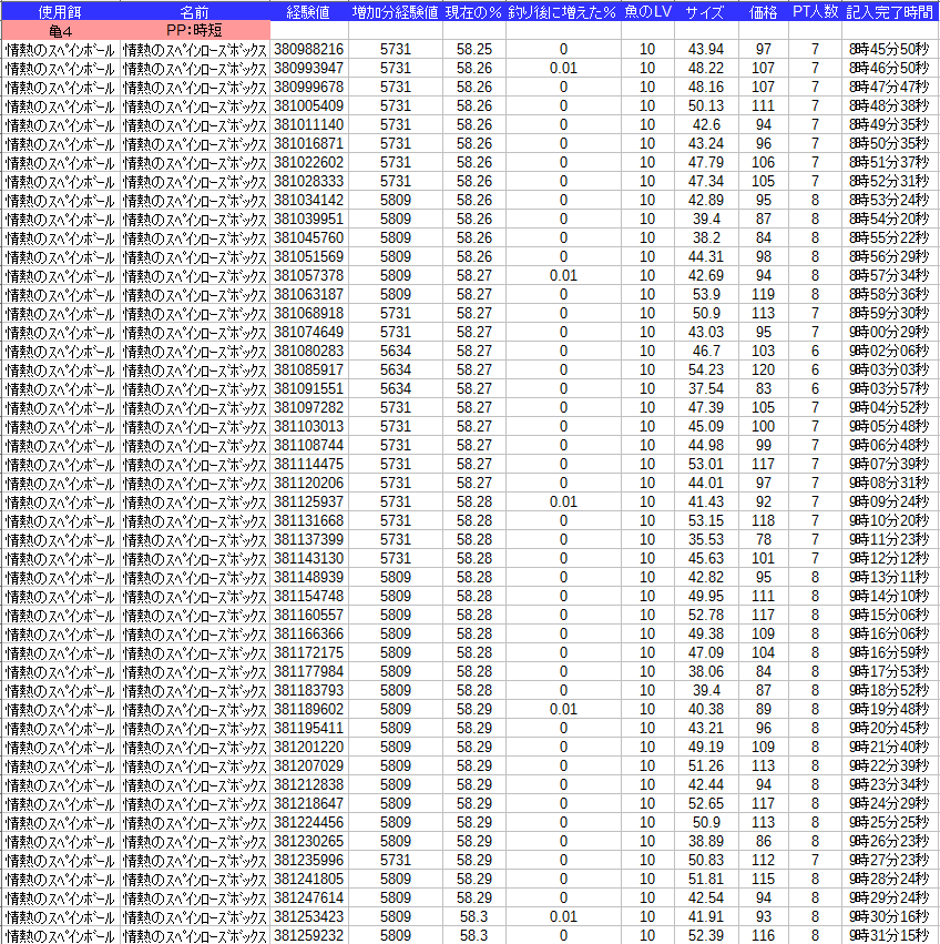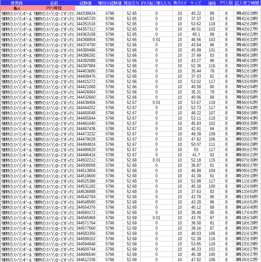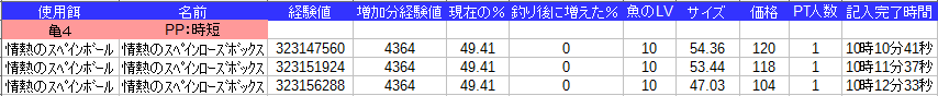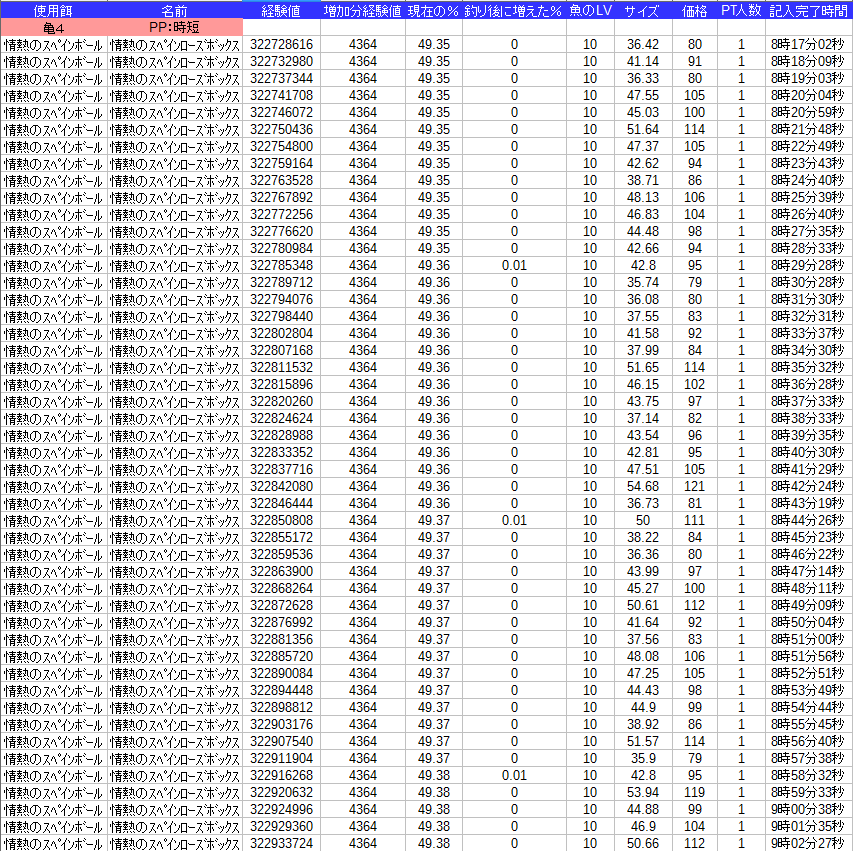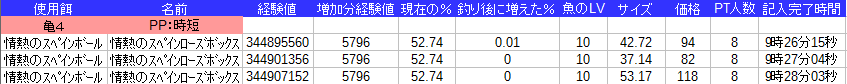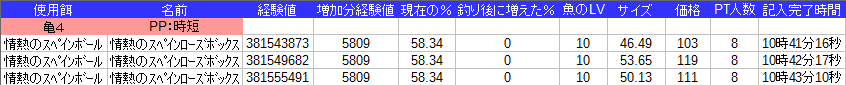 課金餌なので釣れる種類が1種類でグラフは面白くなさそうなので
