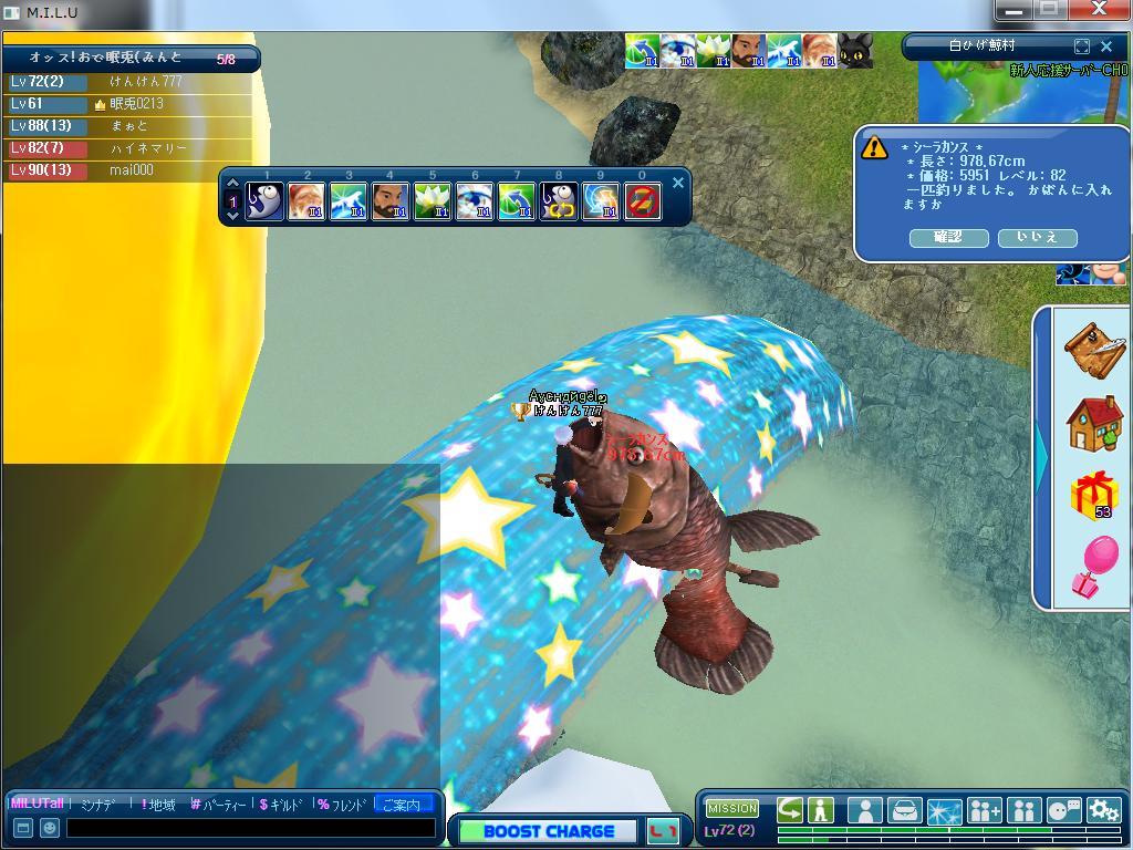 シーラカンスを虹で全長確認。大きな魚釣れるようになりましたね。