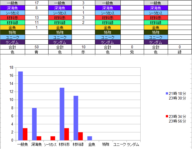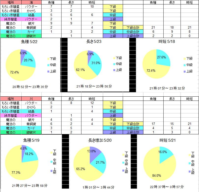 時間帯と場所で釣れるものが変わるんかな?