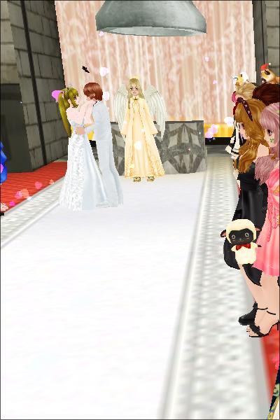 参列者が多くて、後ろのほうに並んだので、主役のおふたり小さい><