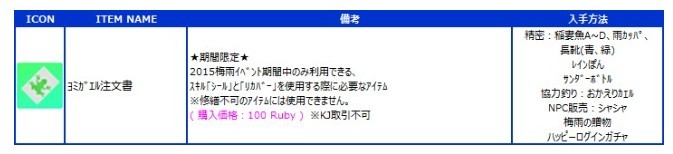 2015年5月27日(水)定期メンテナンス後から7月8日(水)メンテナンス前までの期間内に、イベント餌で釣れるイベント魚を500匹以上釣る!
