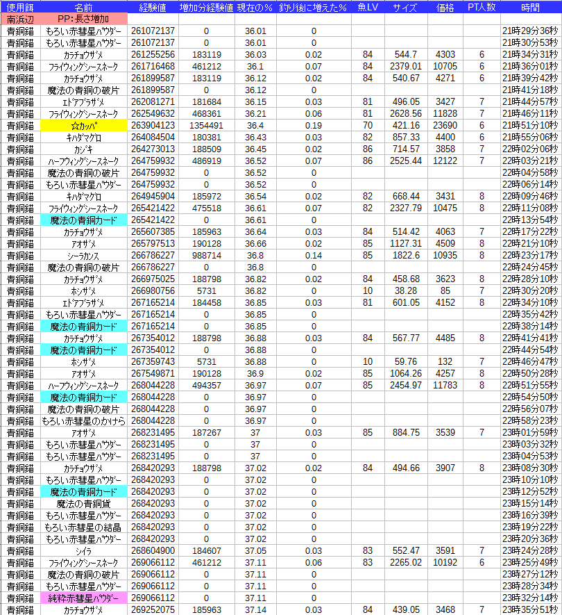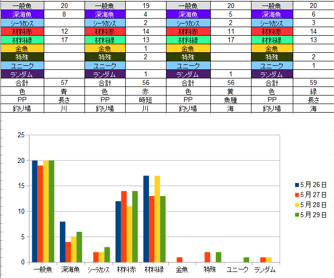 魚種同士は酷い結果になってますが次回に期待です
