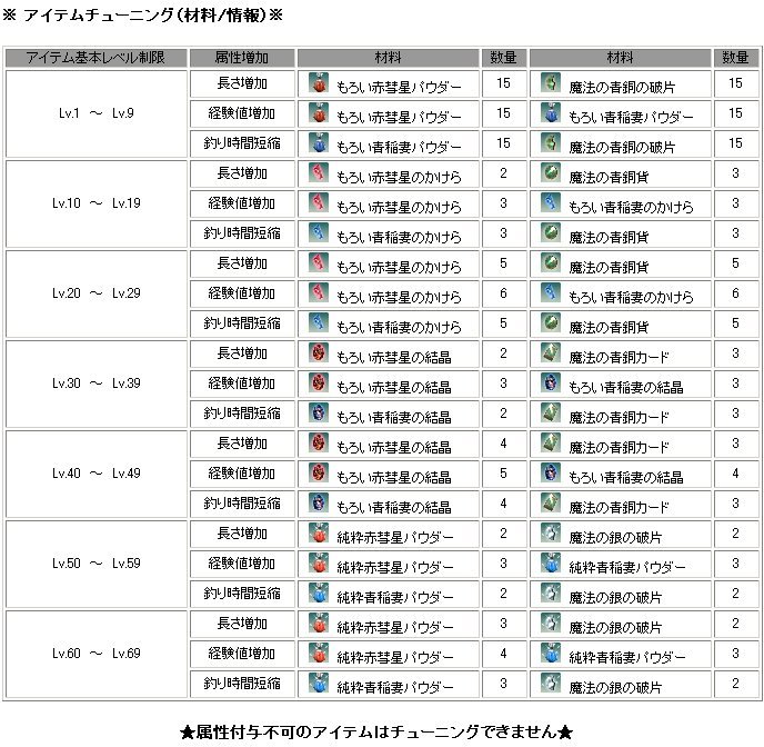 アイテムチューンの材料を載せておくので参考にしてみてください^^