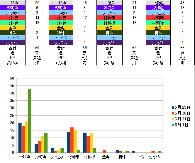4時間かけて釣って材料5つって、ねぇ?