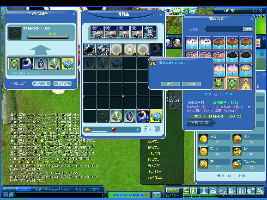 色々なミルトモさんが調合に成功(修繕可能)されているようなので、私も乗っかってみようかと(⌒▽⌒)アハハ!