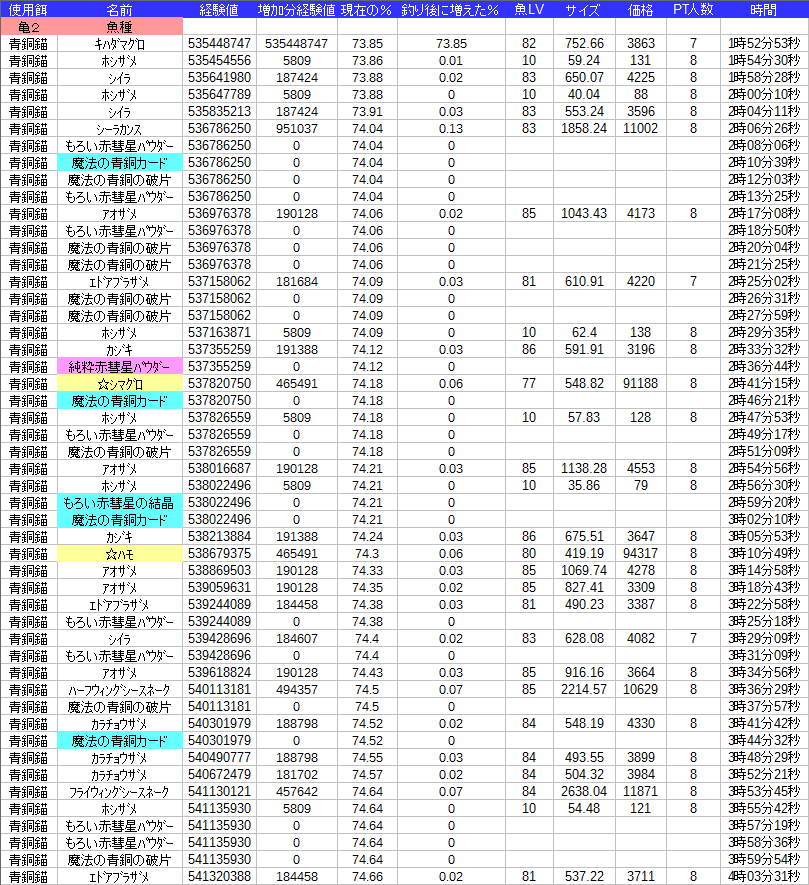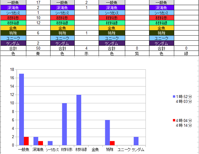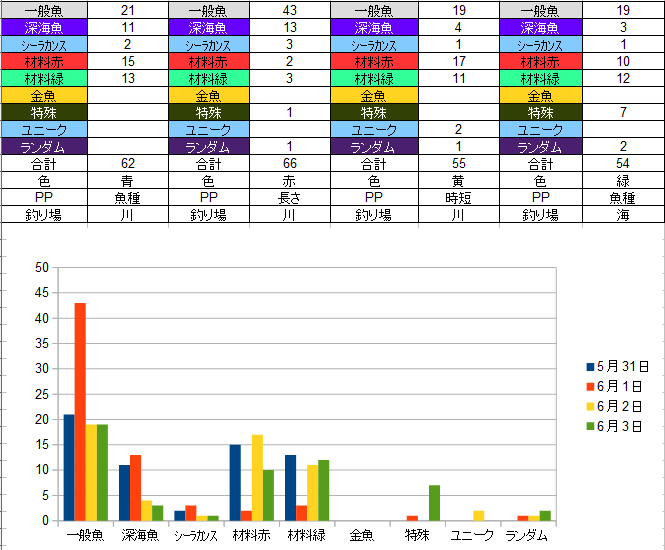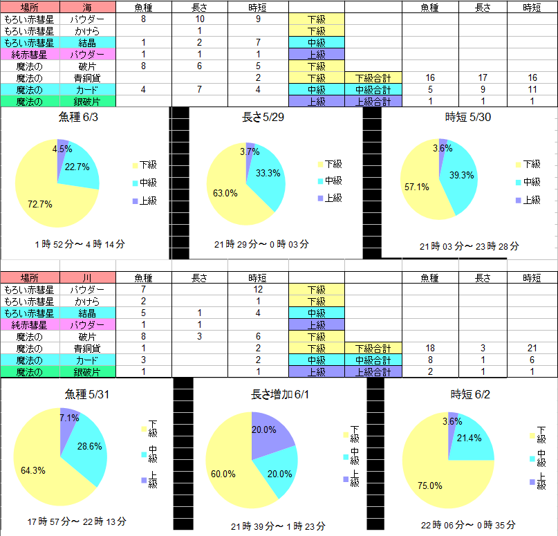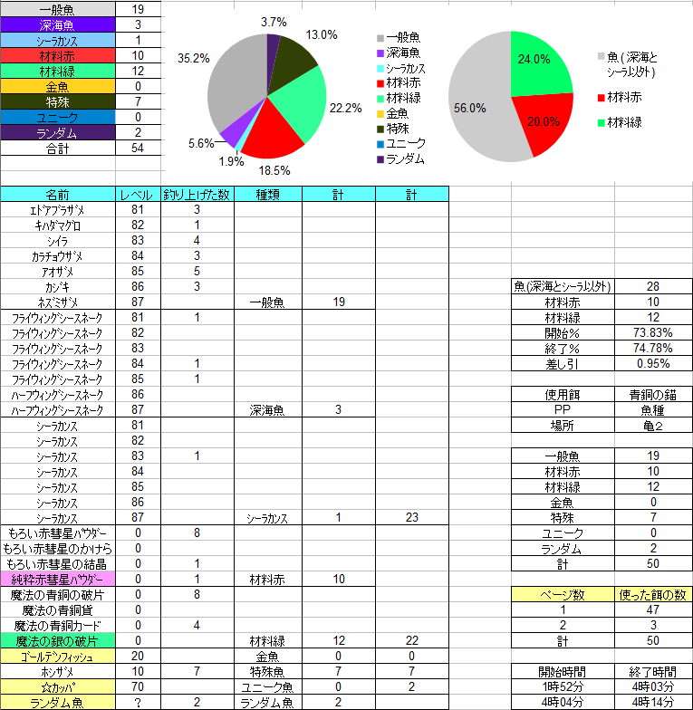 材料的には中級も上級も釣れてるので黒字です(時間的にはもう少し欲しい感じ)