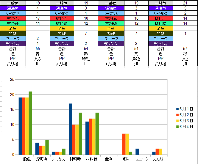 全体的に見て平均数は釣れてるのでいい結果なのではないかと思います