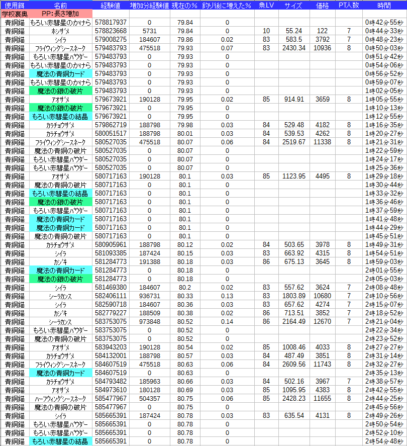 銀かけもレベルと竿で確率変わるんだろうか。。。