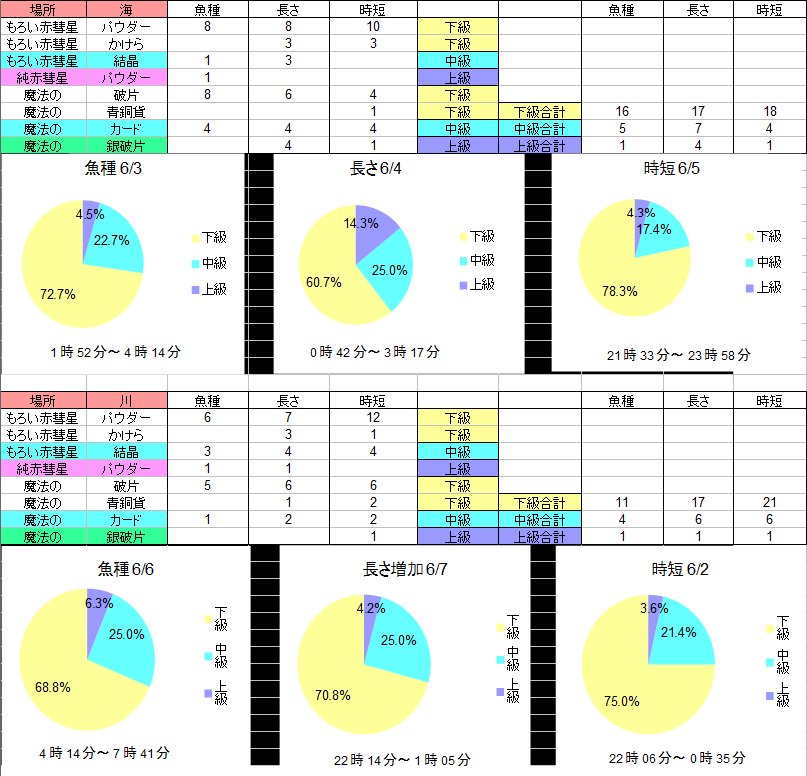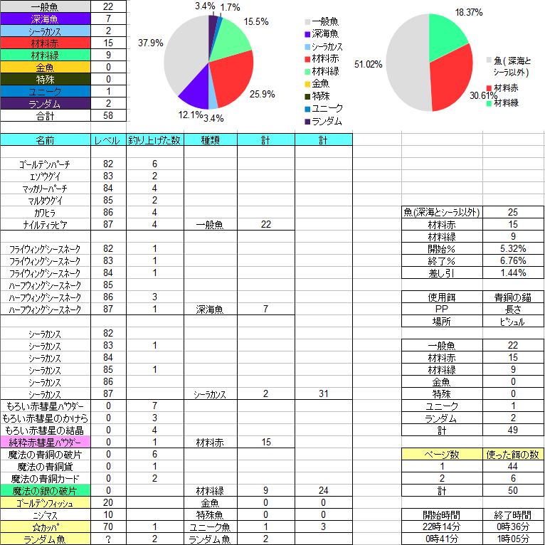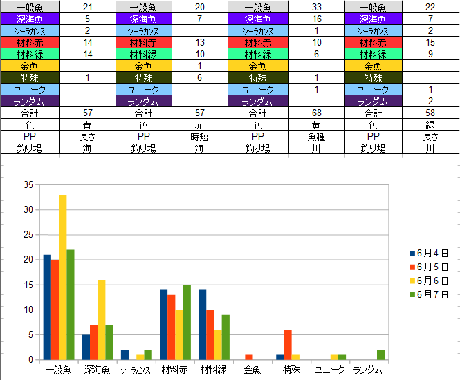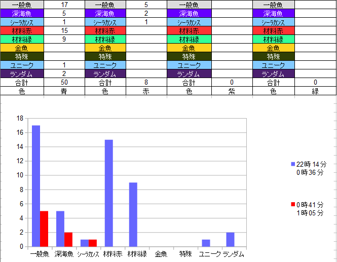 ①今日の夜の記録で一番最初に釣れる魚は何か?