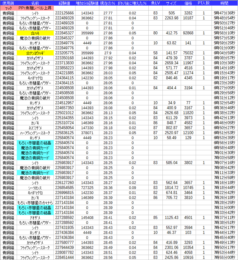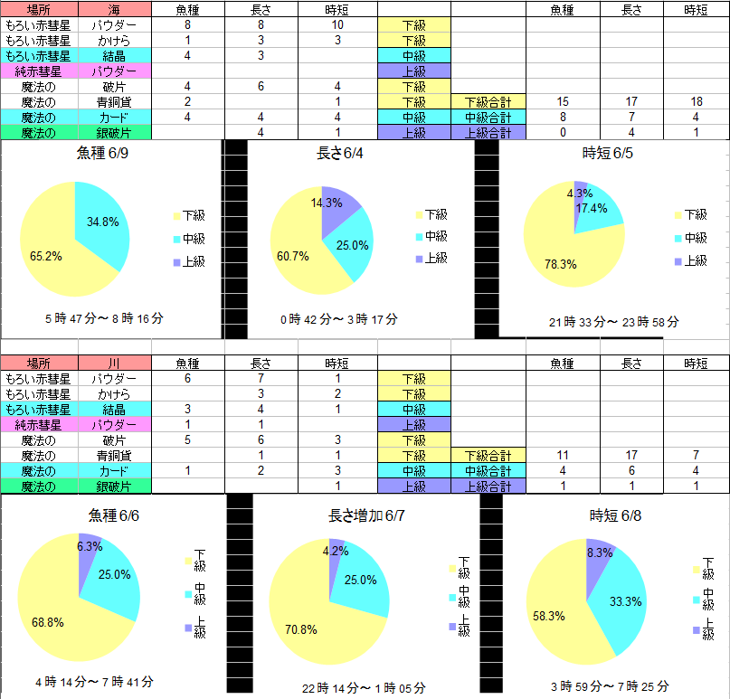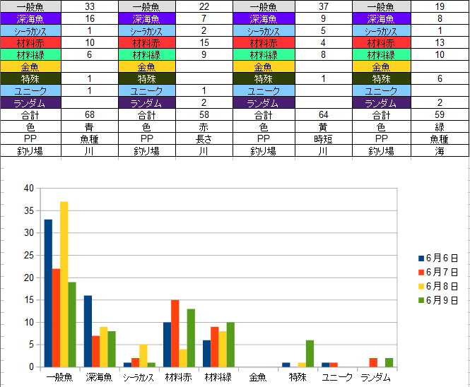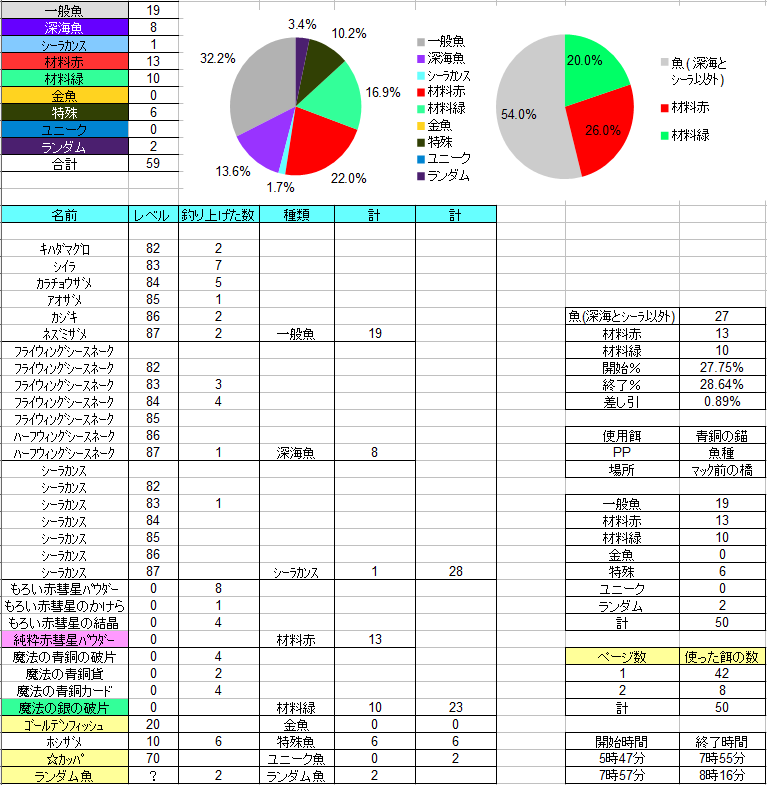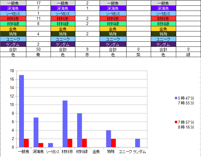 特殊魚多めです、材料はちょっと運がなかったですね