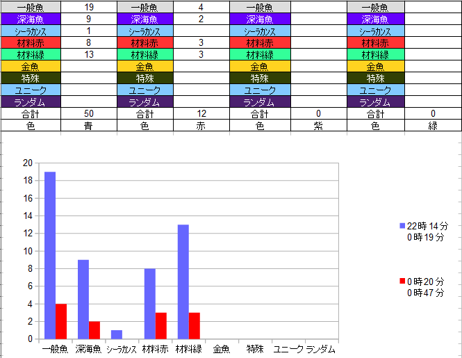 んー・・・材料はぼちぼち、深海魚もそれなり、もう少し良い材料が来て欲しいと思うくらいですね