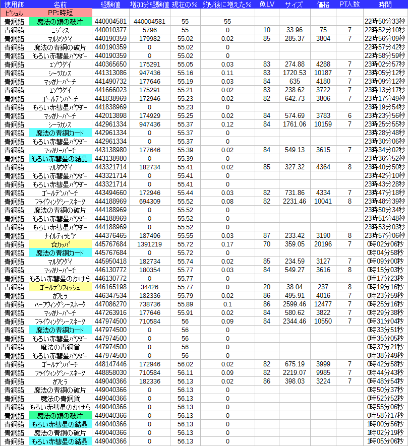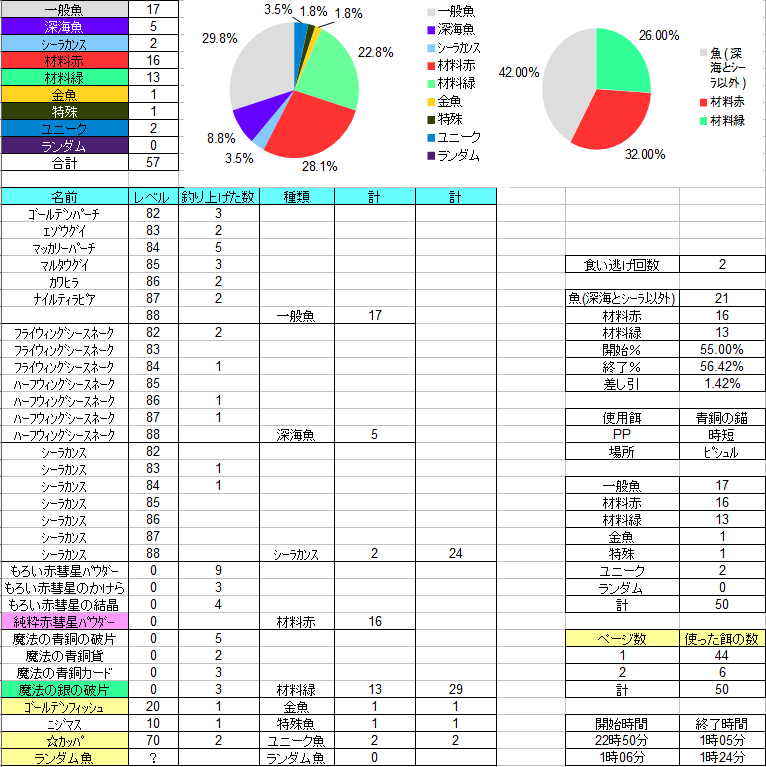 今回はめぼしいゾロ目ちゃんいなかったので長さ特化で釣ってみた結果をぺたぺたします