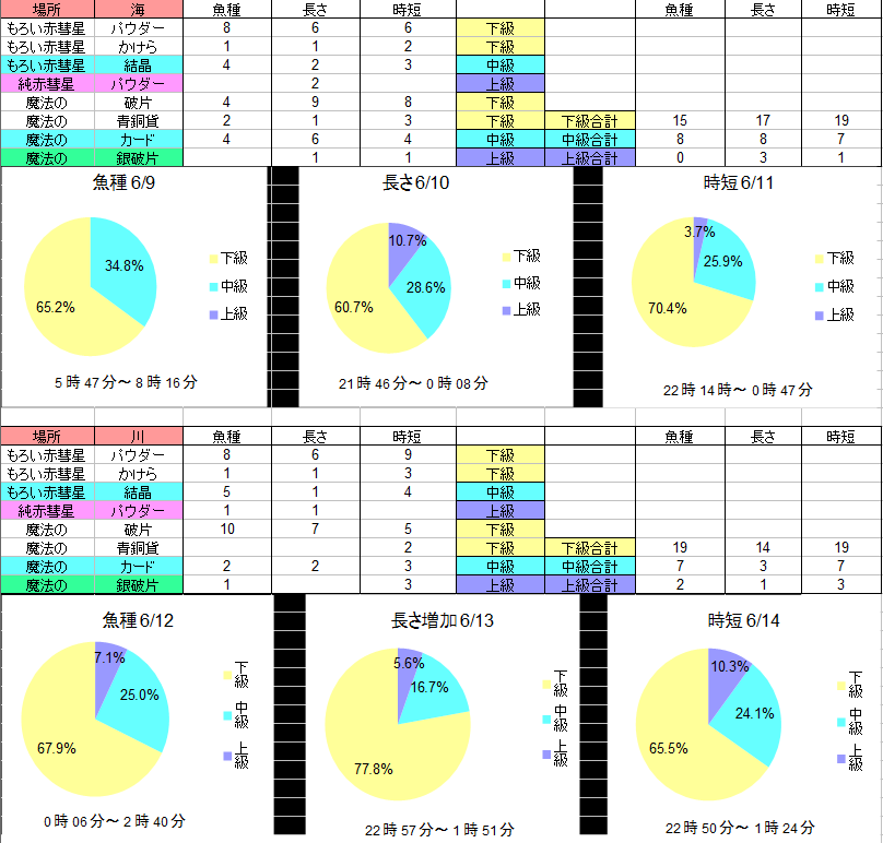 全体的に見てもそれぞれの釣れる個数は似てる?
