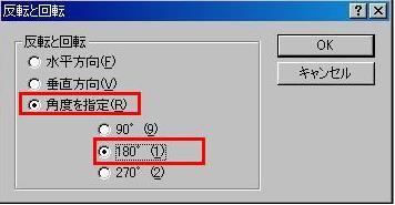 ここでの選択は「角度の指定」→「180°」でOKをしたらおしまいです。