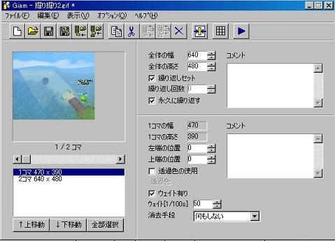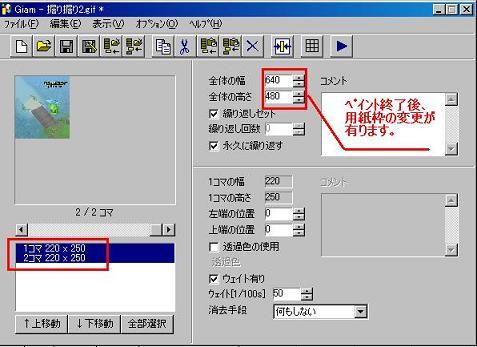 ペイントにての不要部分削除が全部完了しましたら、GIF作成ソフト内に登録してある画用紙枠の変更を行ってください。
