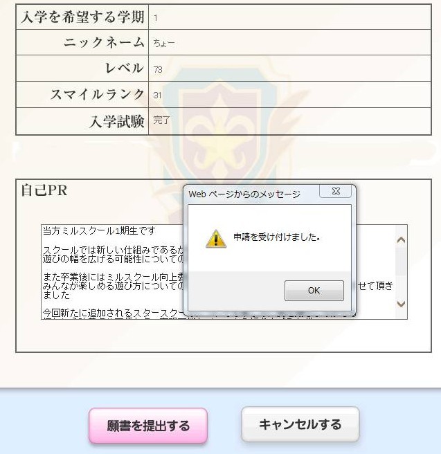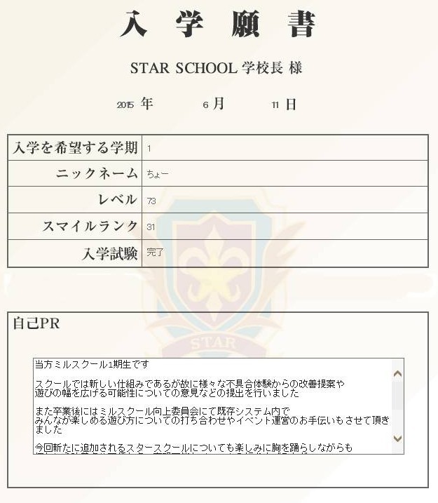 今回のスタースクールの入学許可についてご検討の程よろしくお願い致します