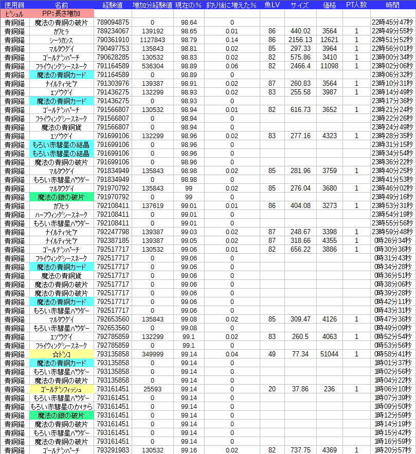 レベルと竿の関係もありますが面白い結果にはなってるので一見の価値はあるのかな・・・