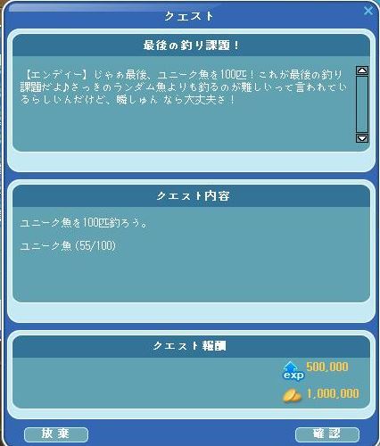 Lv106の開放の試練で、ランダム魚100匹の次が↓