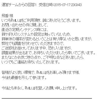 はい、運営から返信きました