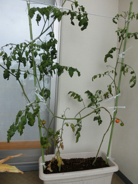これとは別に越冬トマトがありますが、成長の限界が来たようで、ちょっと枯れ気味です。