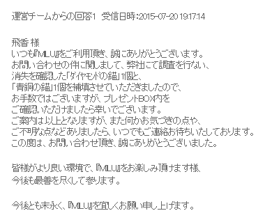エサの補填をお願いした時の運営の解答