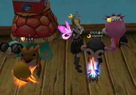 お友達のイベクエ消化ね~イケスデッキに上がった、倒せないハチいましたねwww